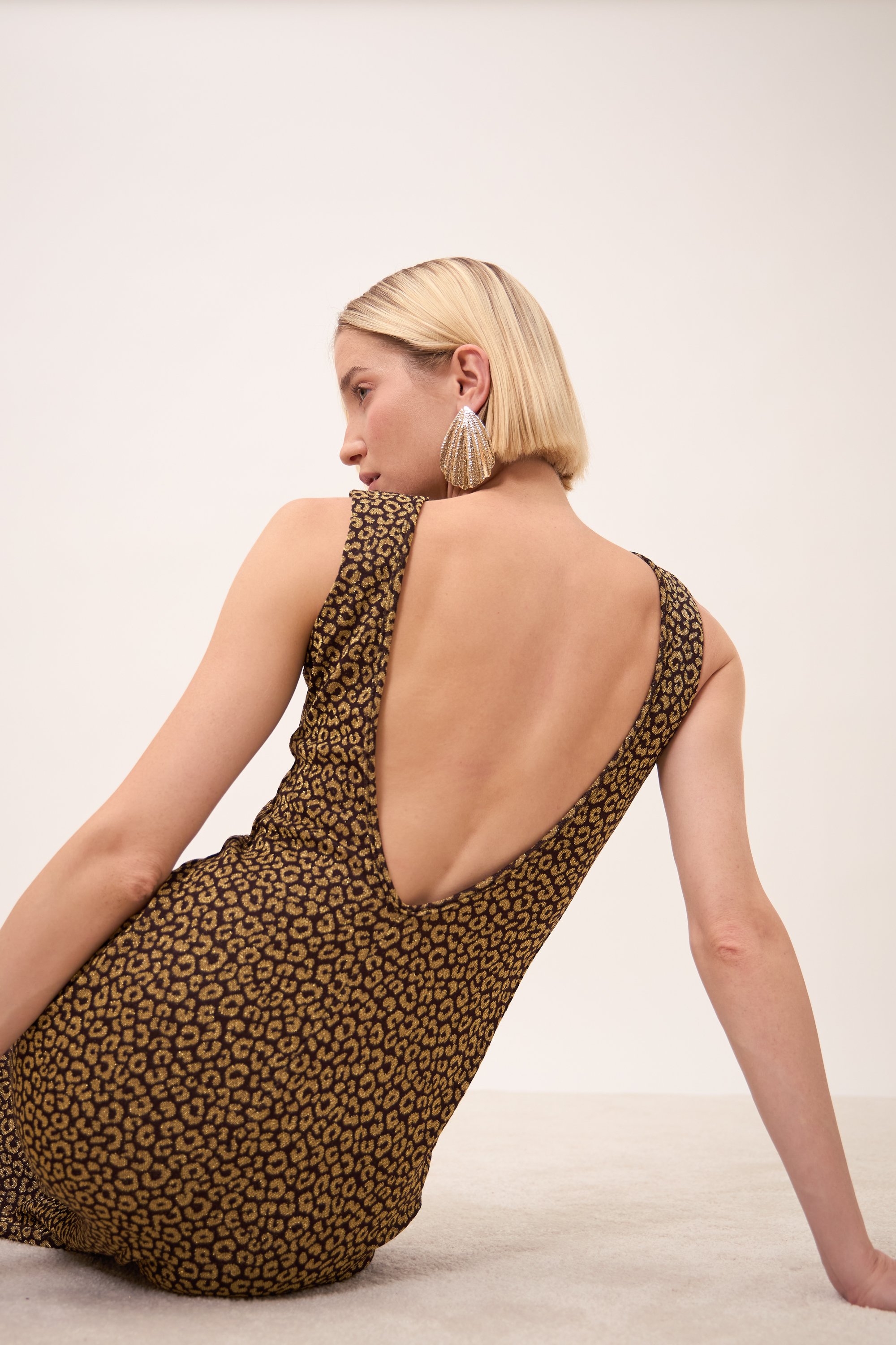 Abito lungo con scollatura profonda sulla schiena.