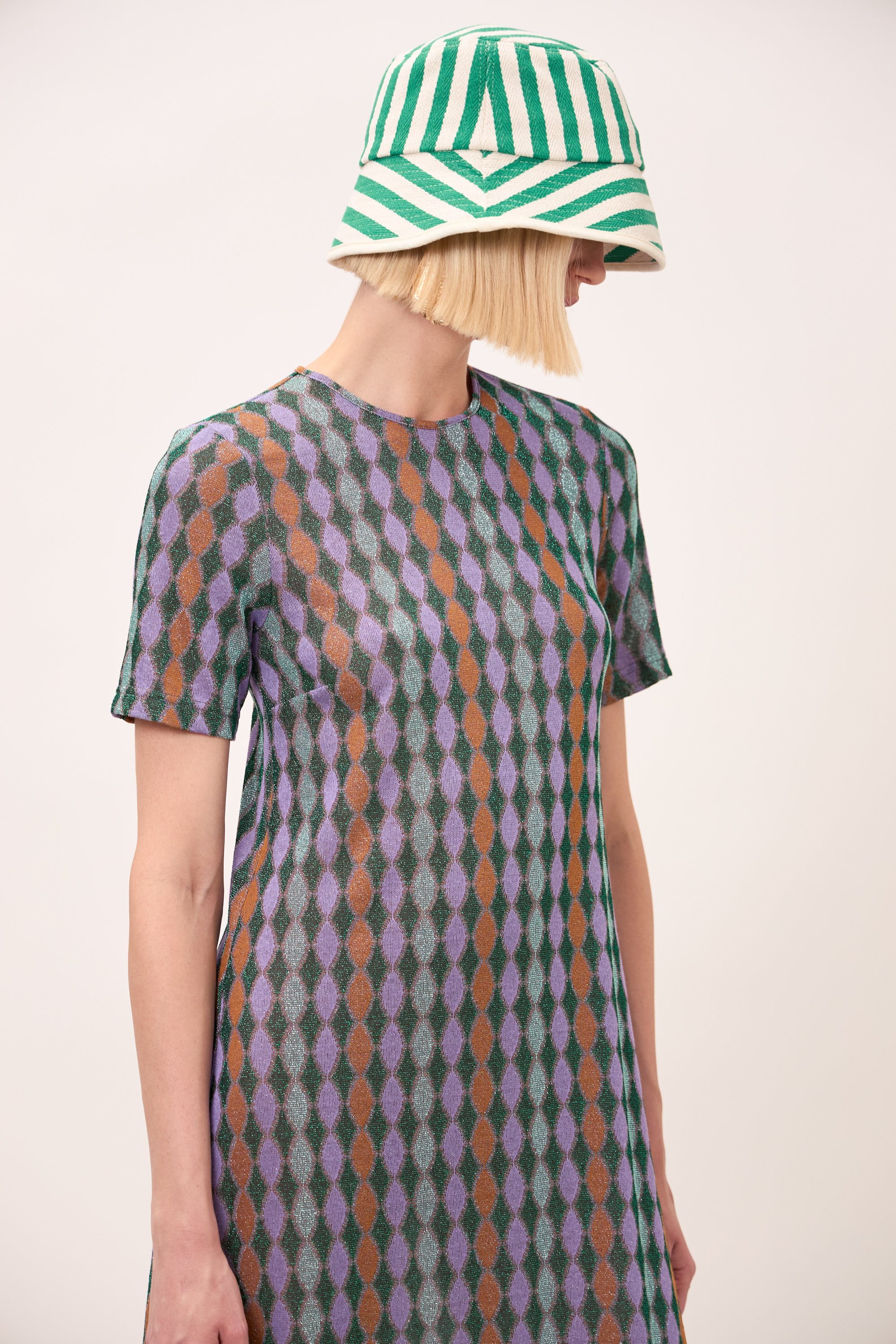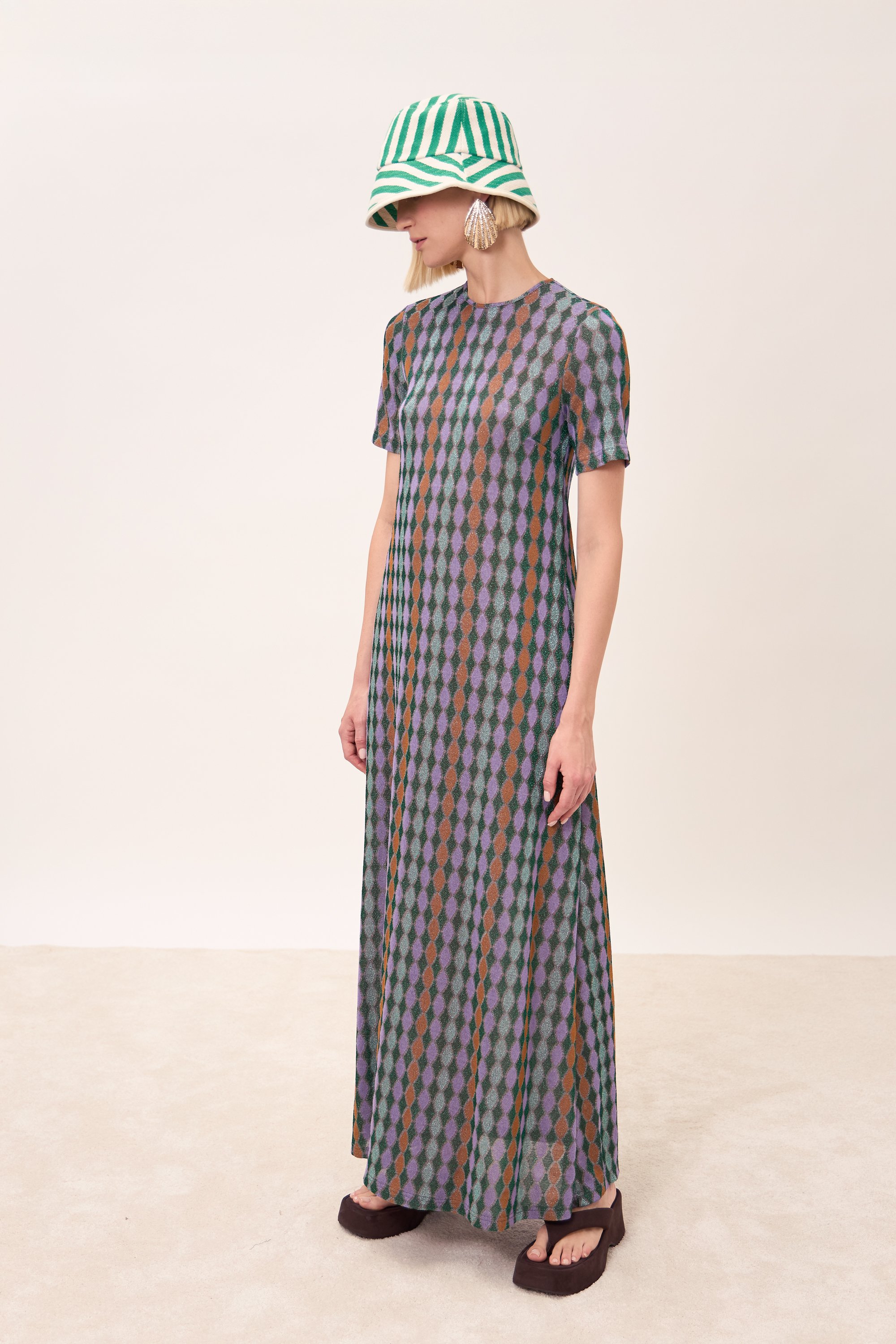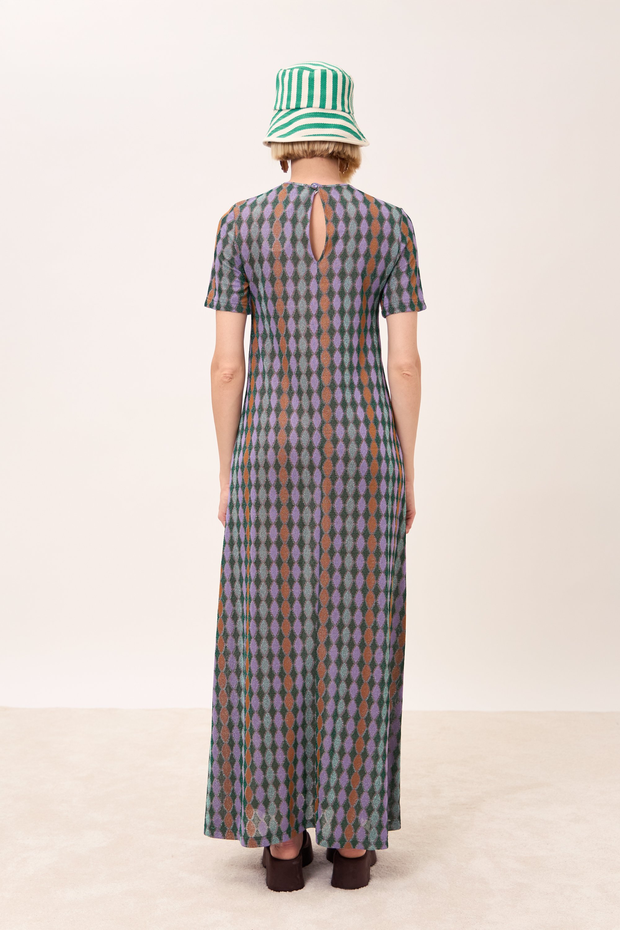 Abito lungo girocollo svasato manica corta. Goccia sulla schiena.