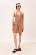 Mini dress con spallina sottile scollo a V. Gonna con balze sfalsate.