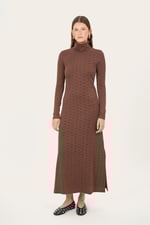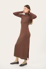 Abito tunica lungo con spacchi laterali, sfiancato, con mani che lunghe aderenti e collo alto morbido.