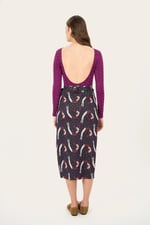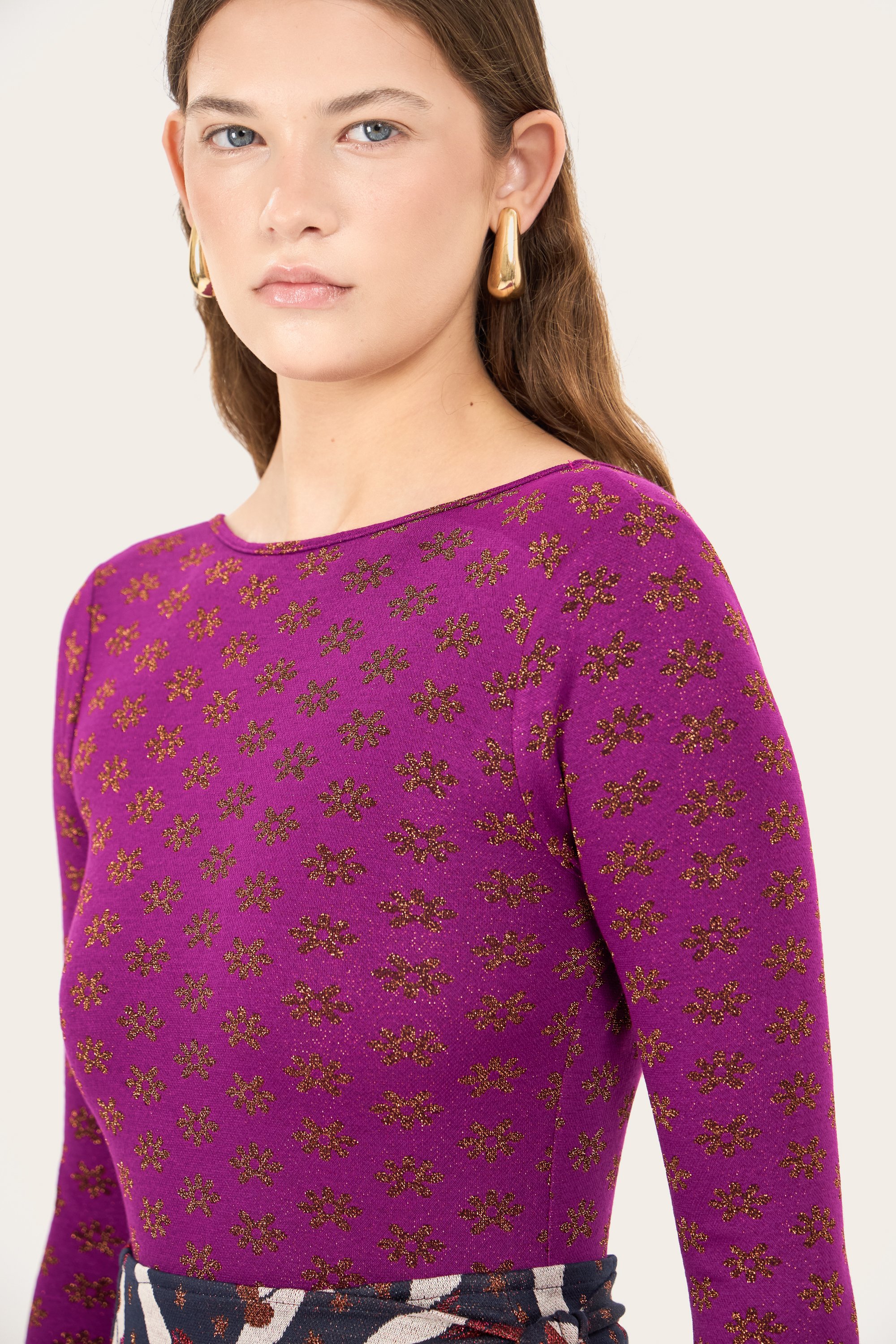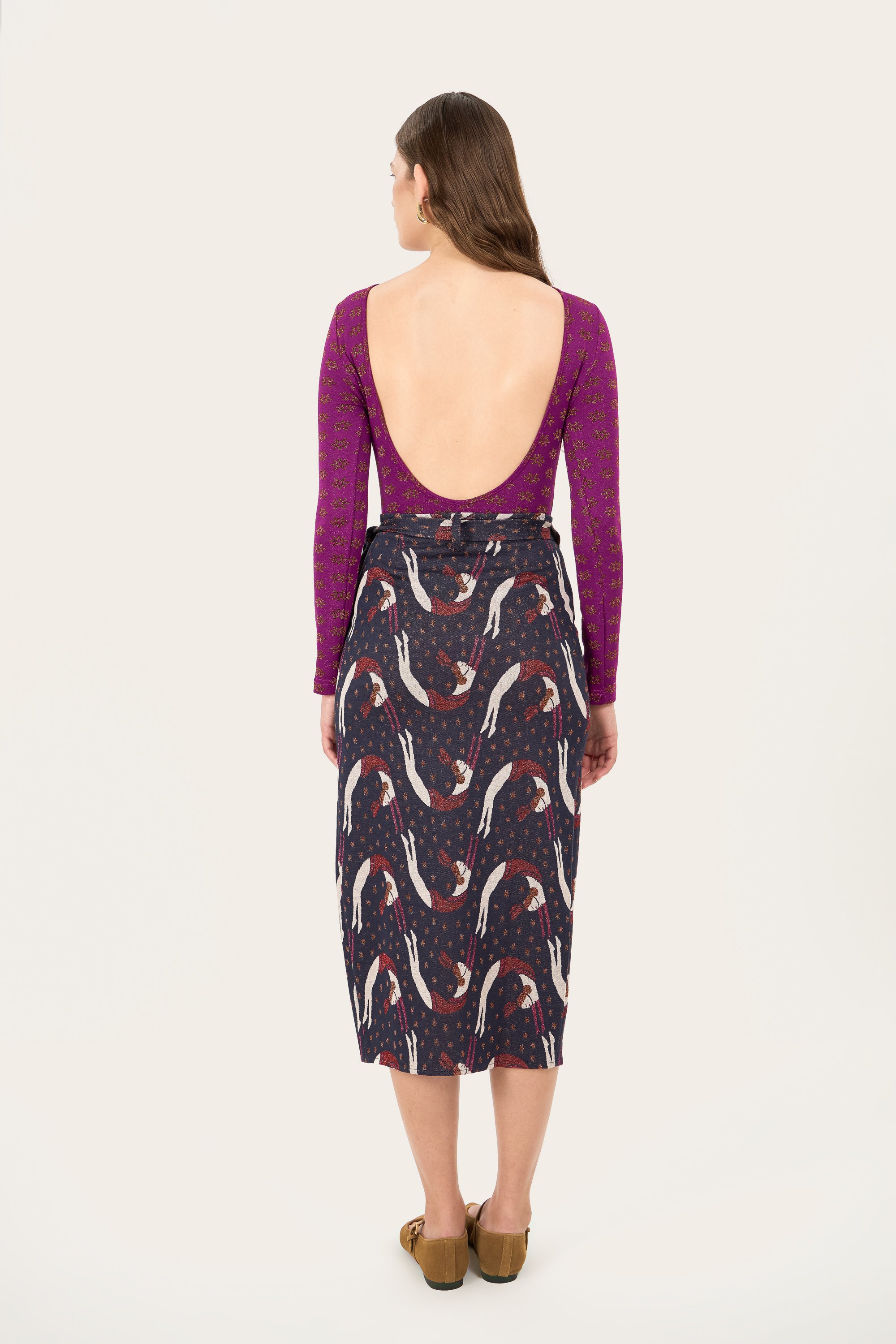 Body sgambato con scollo tondo ampio e maniche lunghe. Scollatura profonda sulla schiena.