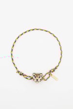 Bracciale in porcellana, perline di vetro e ottone placcato oro fine. Metallo certificato senza nichel e anallergico. La porcellana è realizzata e dipinta a mano, con applicazione di foglia d’oro. Ogni pezzo è unico, e le sue piccole irregolarità gli conferiscono un aspetto autentico e prezioso.
