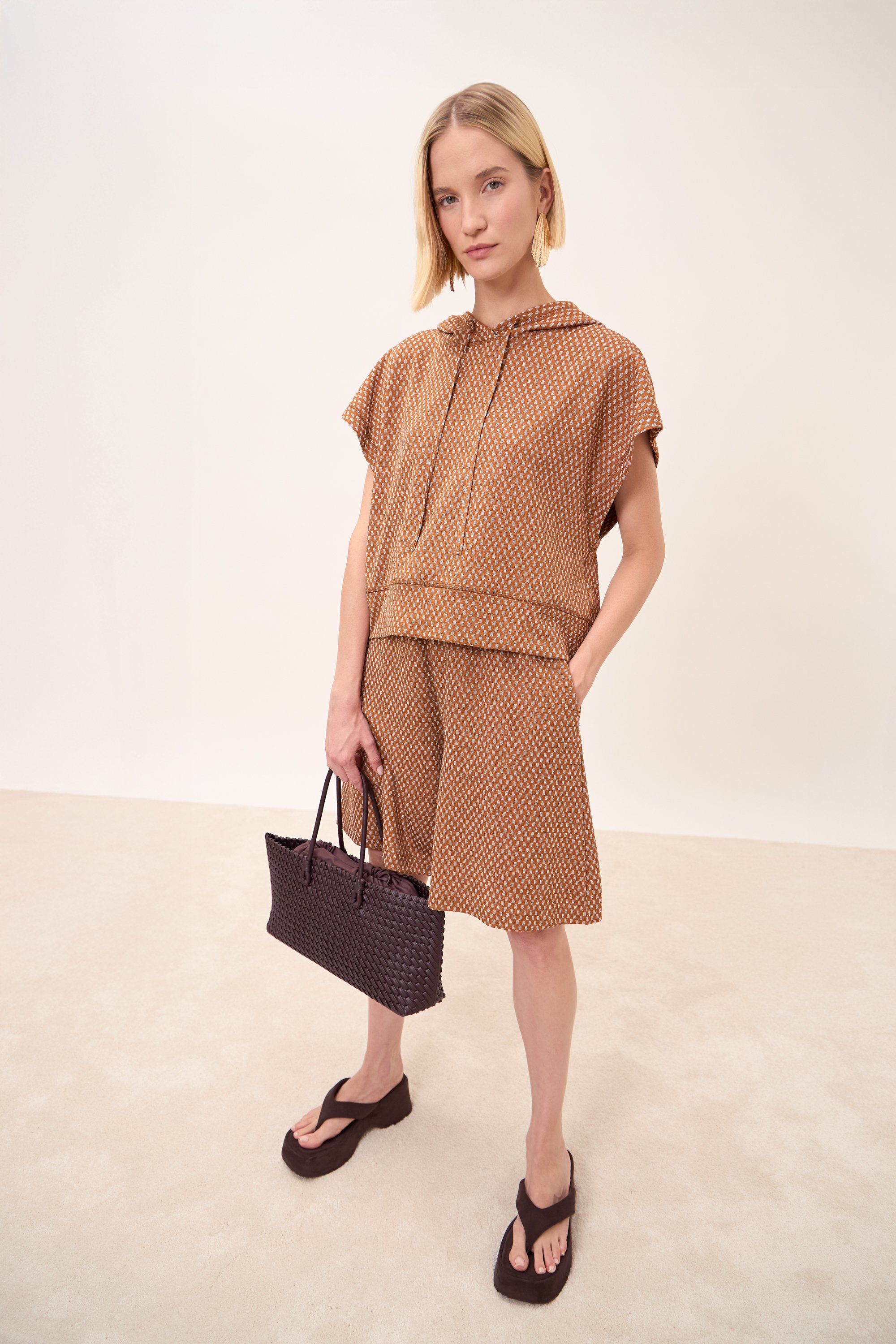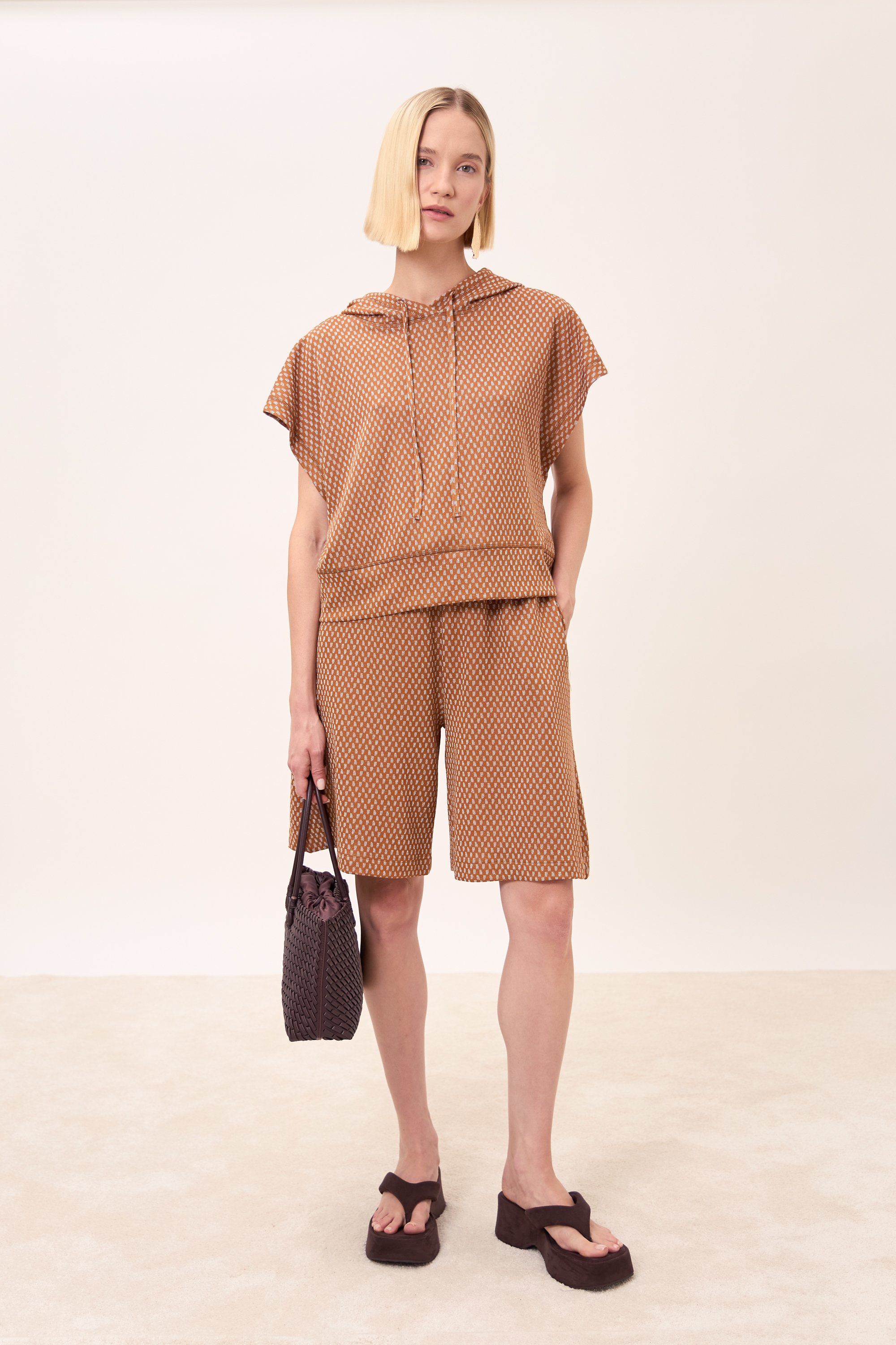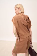 Felpa manica corta con cappuccio.