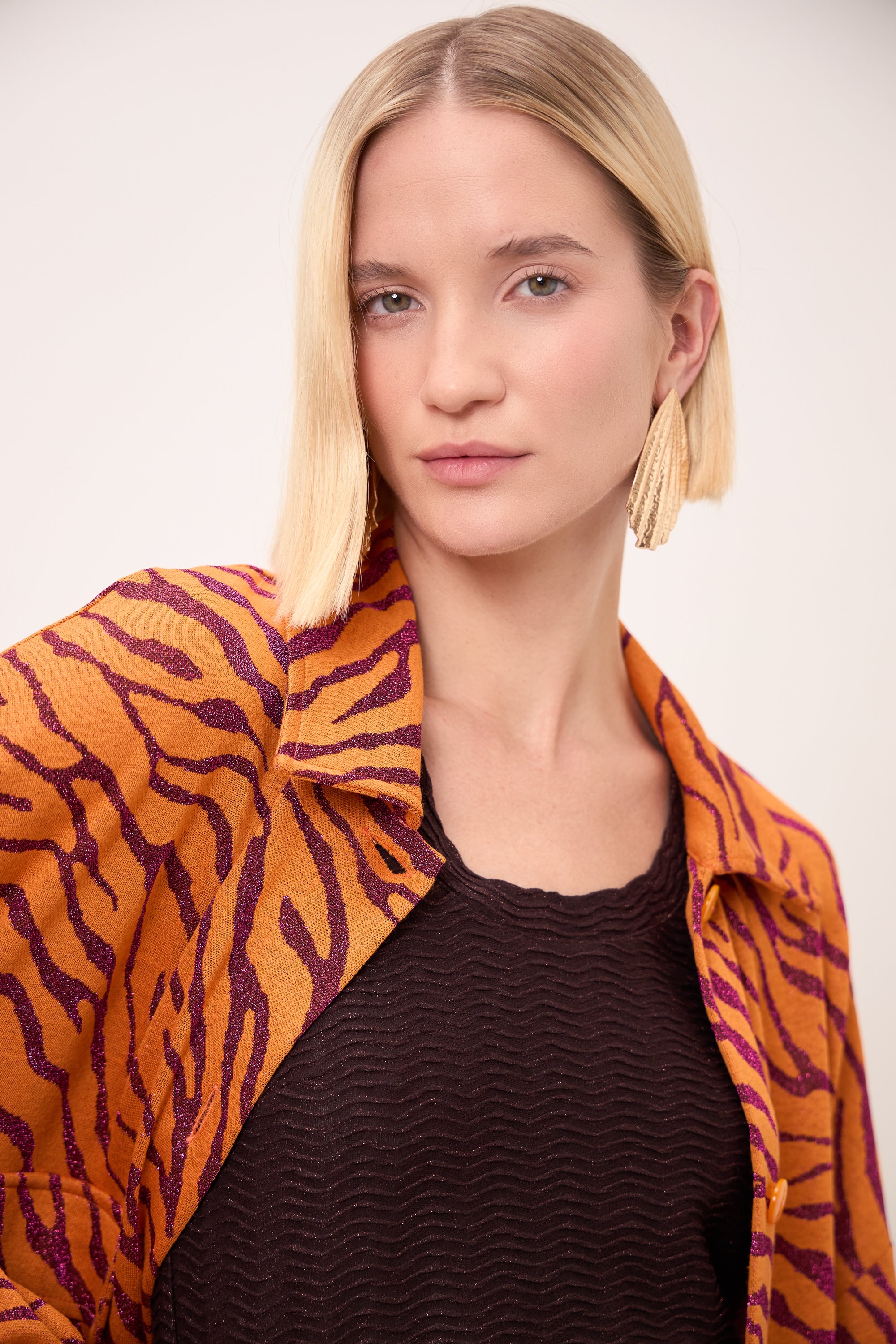 Giacca camicia over con colletto a revers e maniche lunghe.