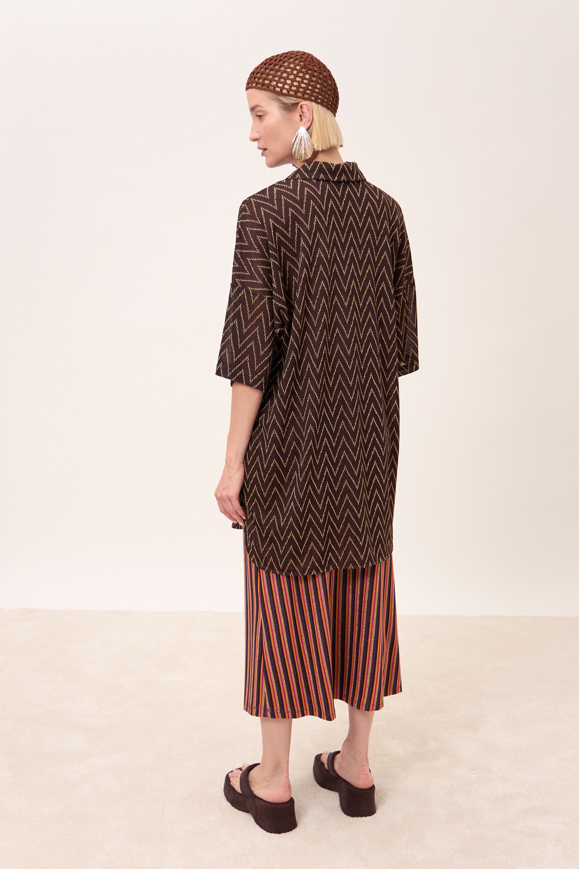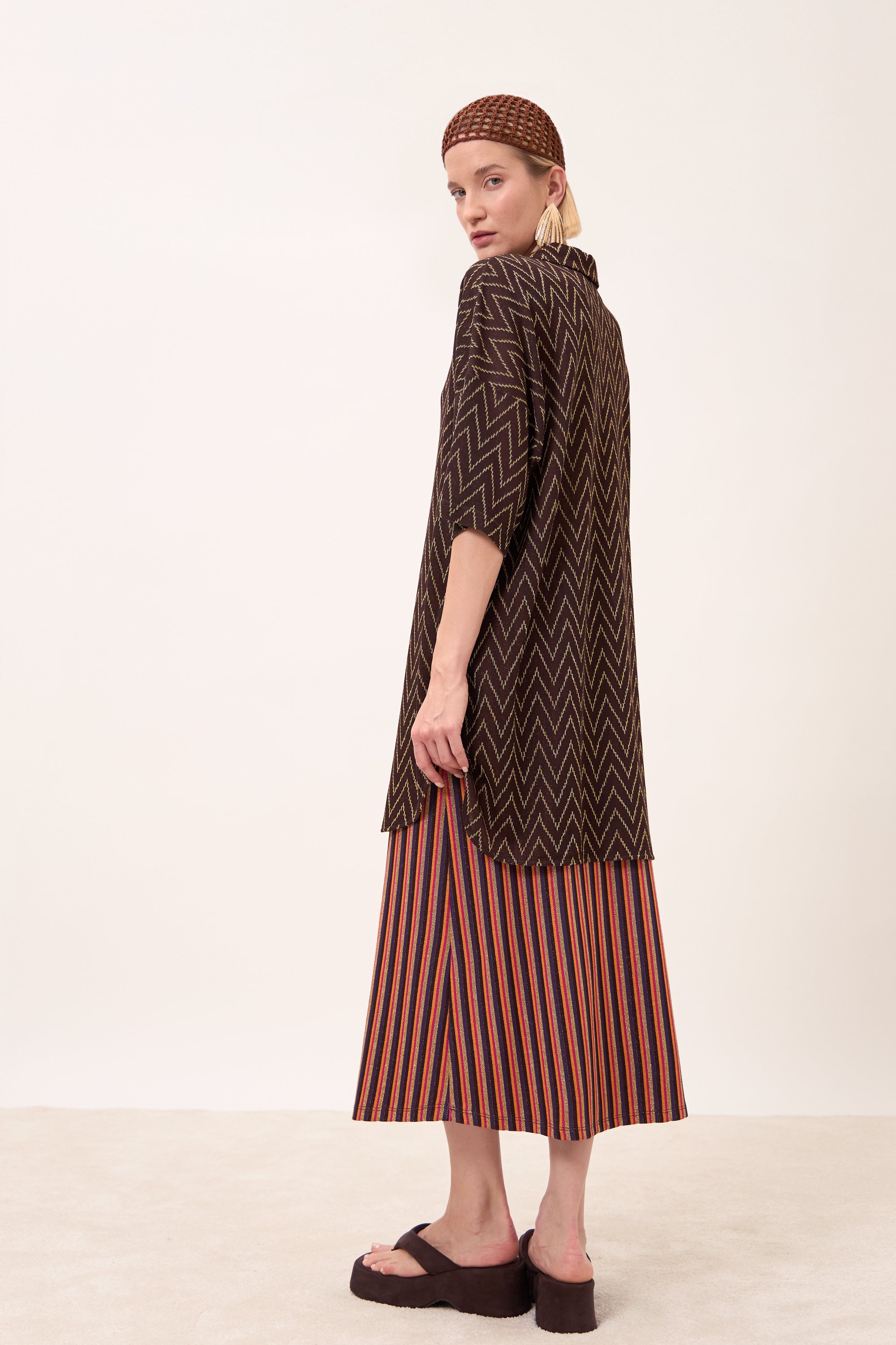 Gonna midi, leggermente svasata, con elastico in vita.