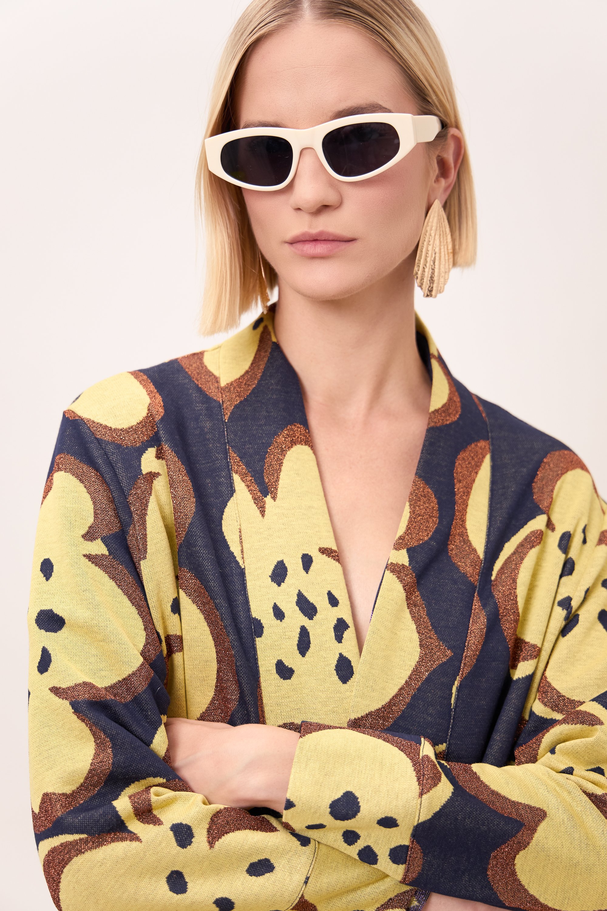 Giacca aperta stile kimono con maniche lunghe.