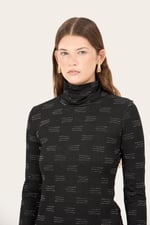 Maglia a collo alto con manica lunga stretta. Sfiancato.