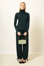Maglia a collo alto con manica lunga stretta. Sfiancato.