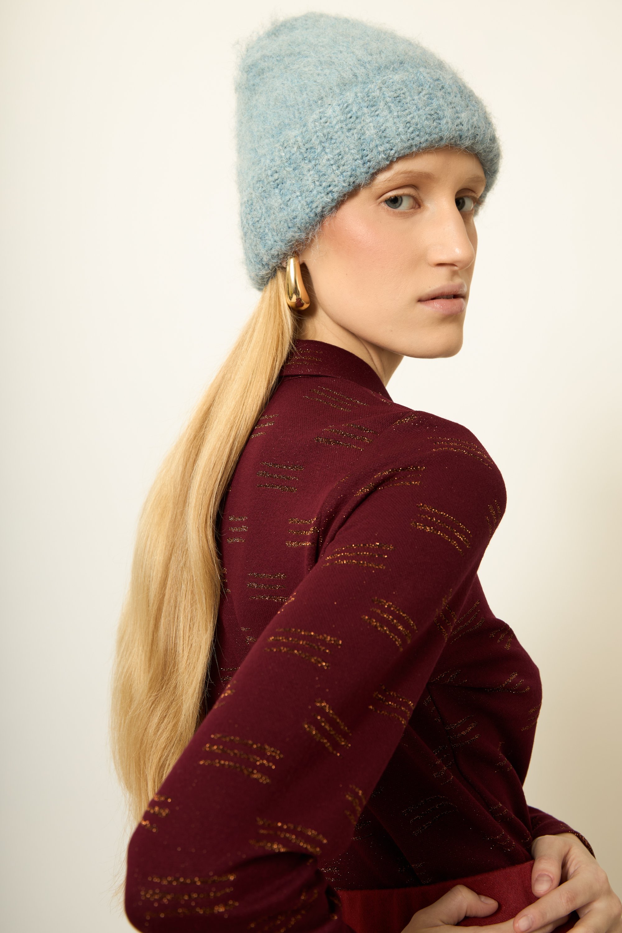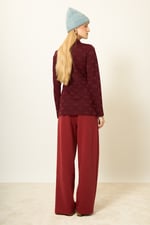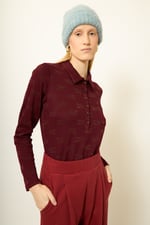 Polo in figura con scollo a V e colletto a vela. Manica lunga.