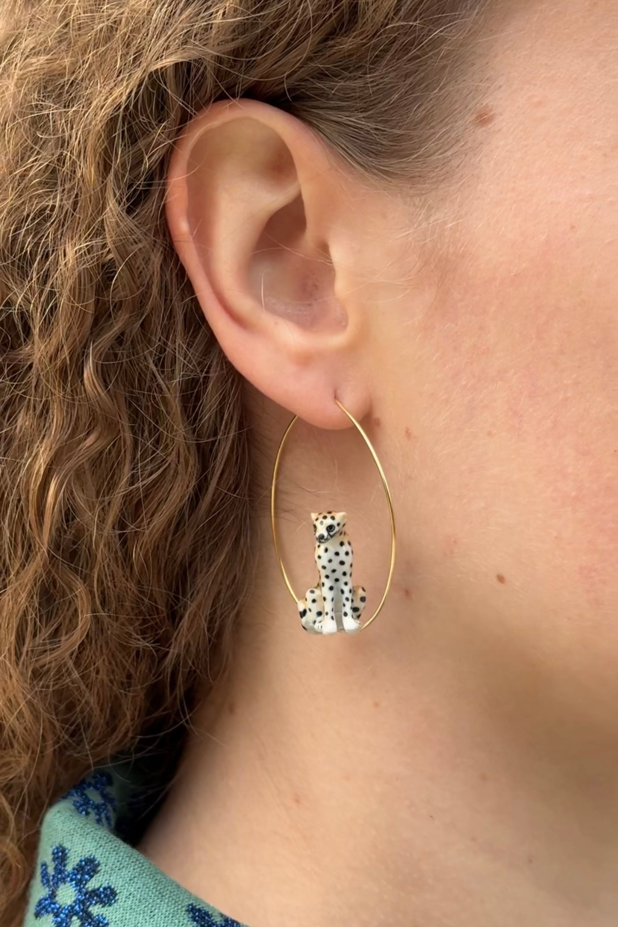 Orecchini in porcellana e ottone dorato con oro fine. Metallo certificato senza nichel e anallergico, proveniente dall’Italia. La porcellana è realizzata e dipinta a mano in modo artigianale. Ogni pezzo è unico e le sue piccole irregolarità gli conferiscono un aspetto autentico e prezioso.