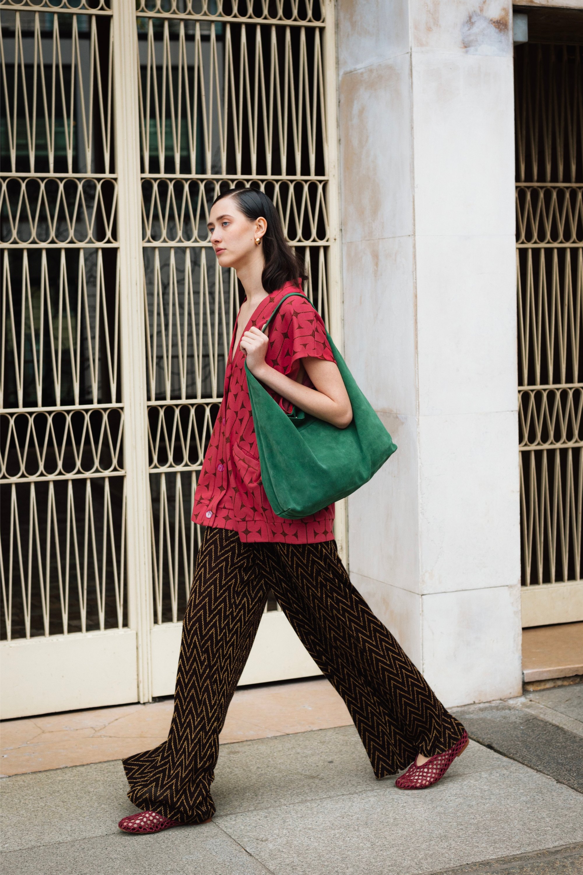 Panta palazzo ampio con elastico in vita e gamba svasata.