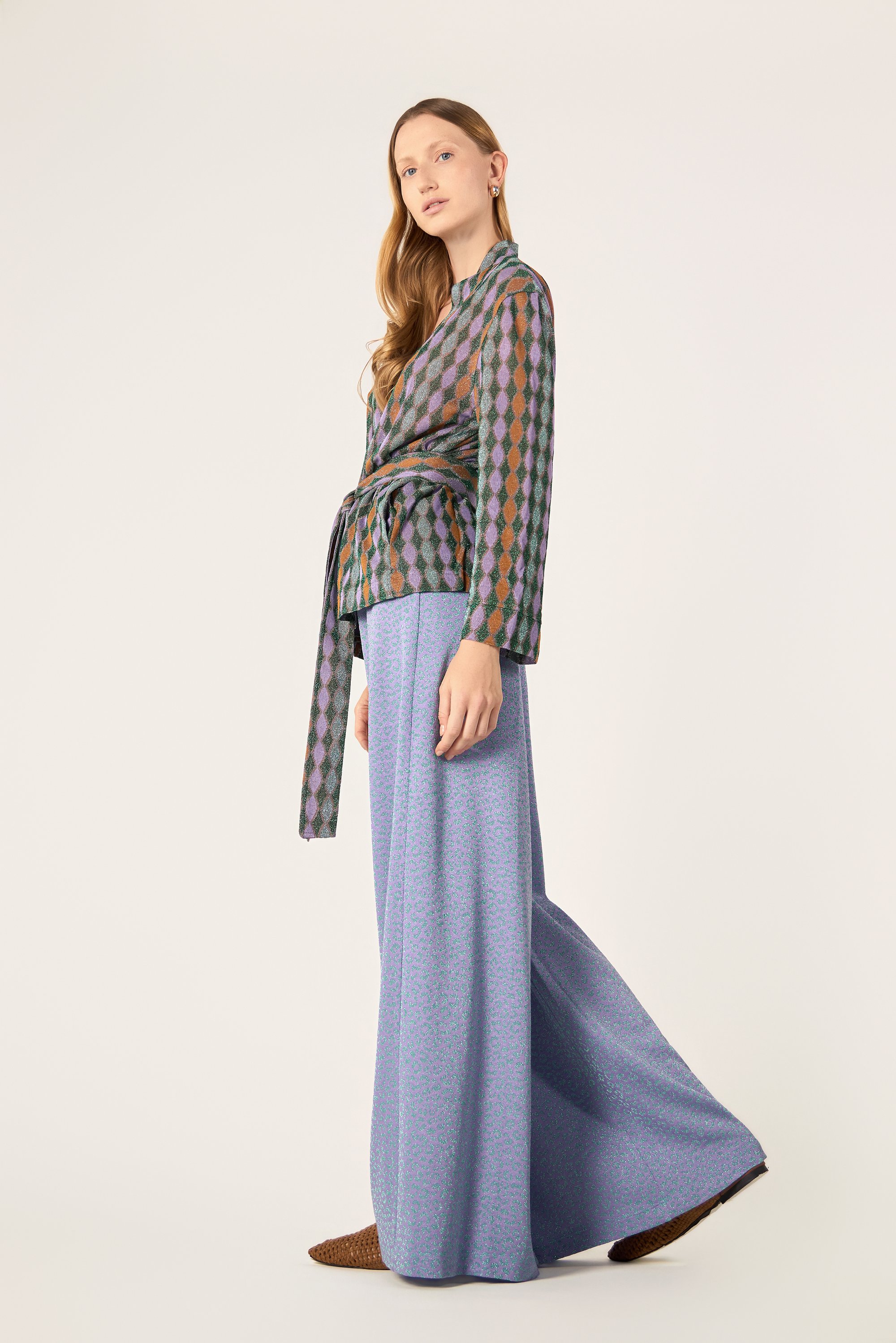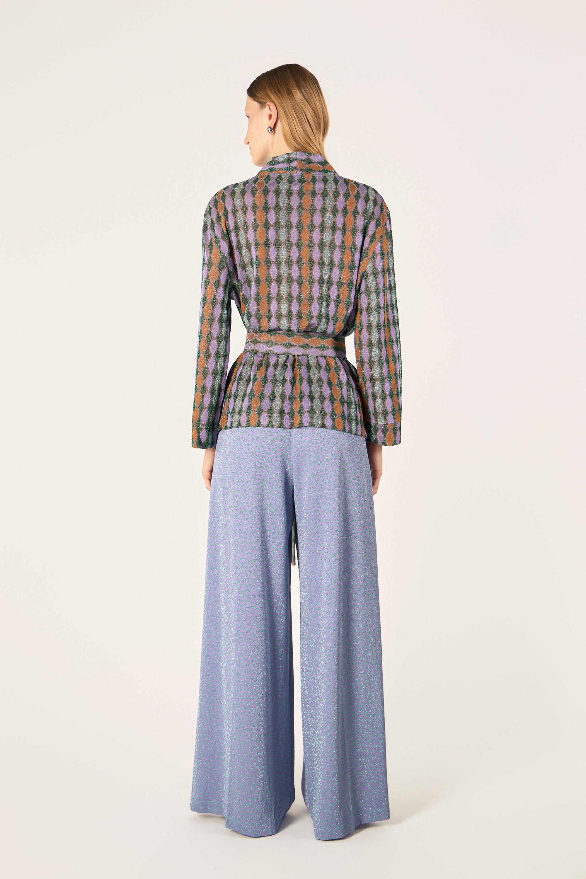 Panta palazzo ampio con elastico in vita e gamba svasata.