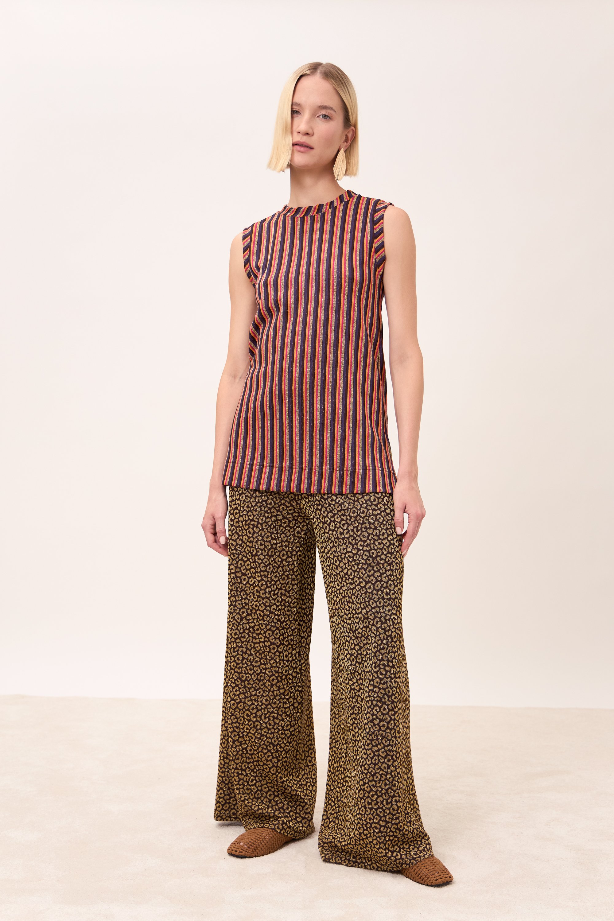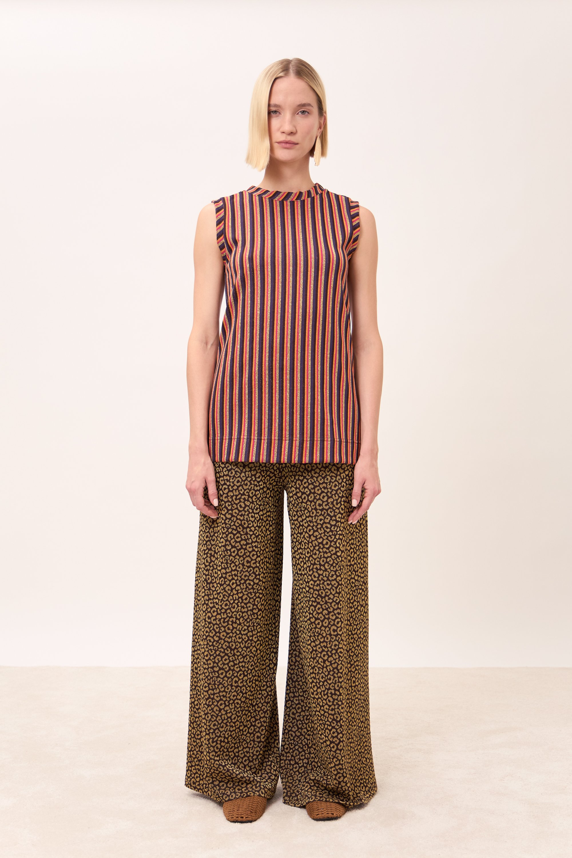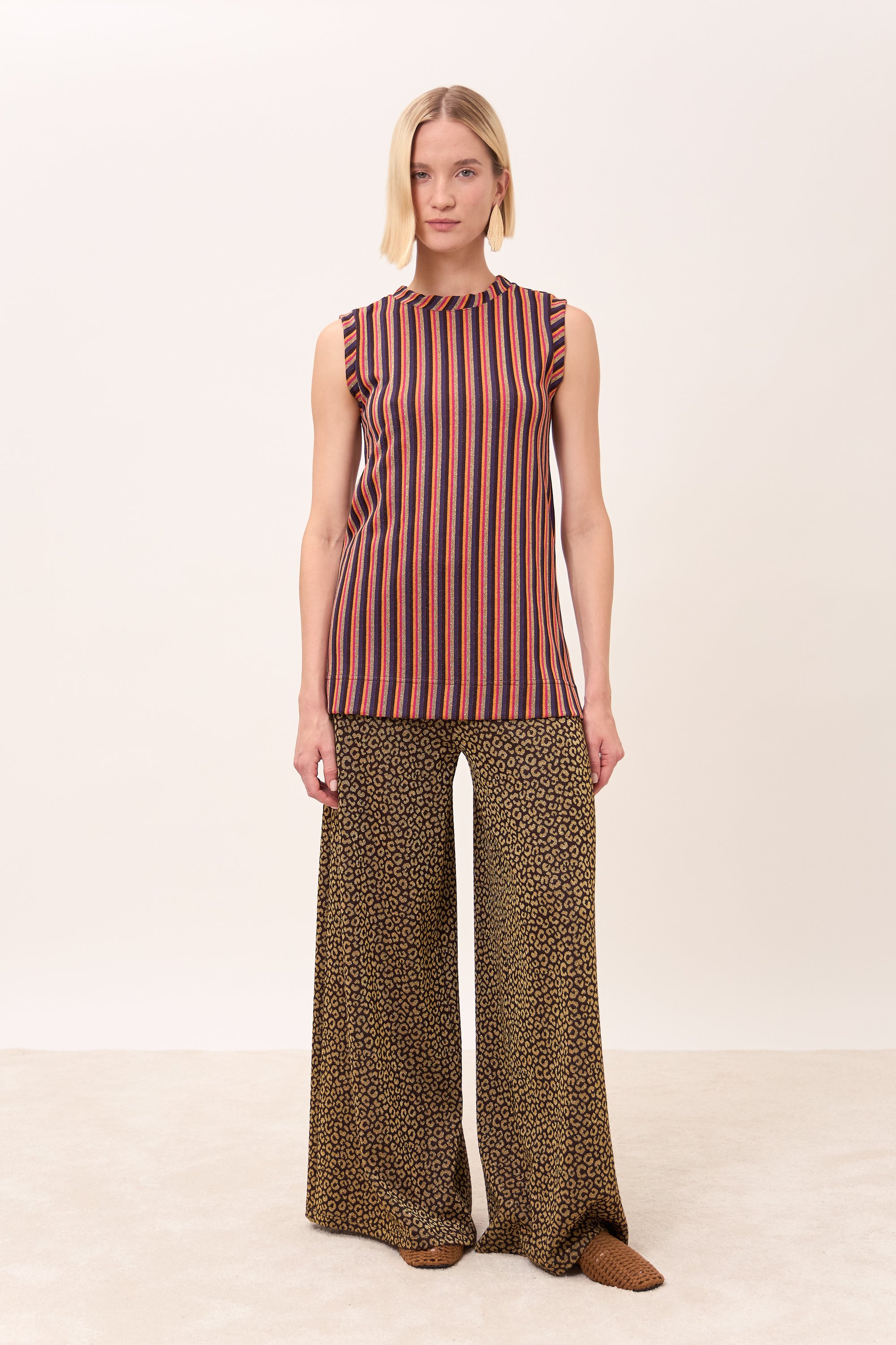 Panta palazzo ampio con elastico in vita e gamba svasata.