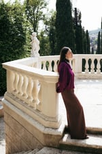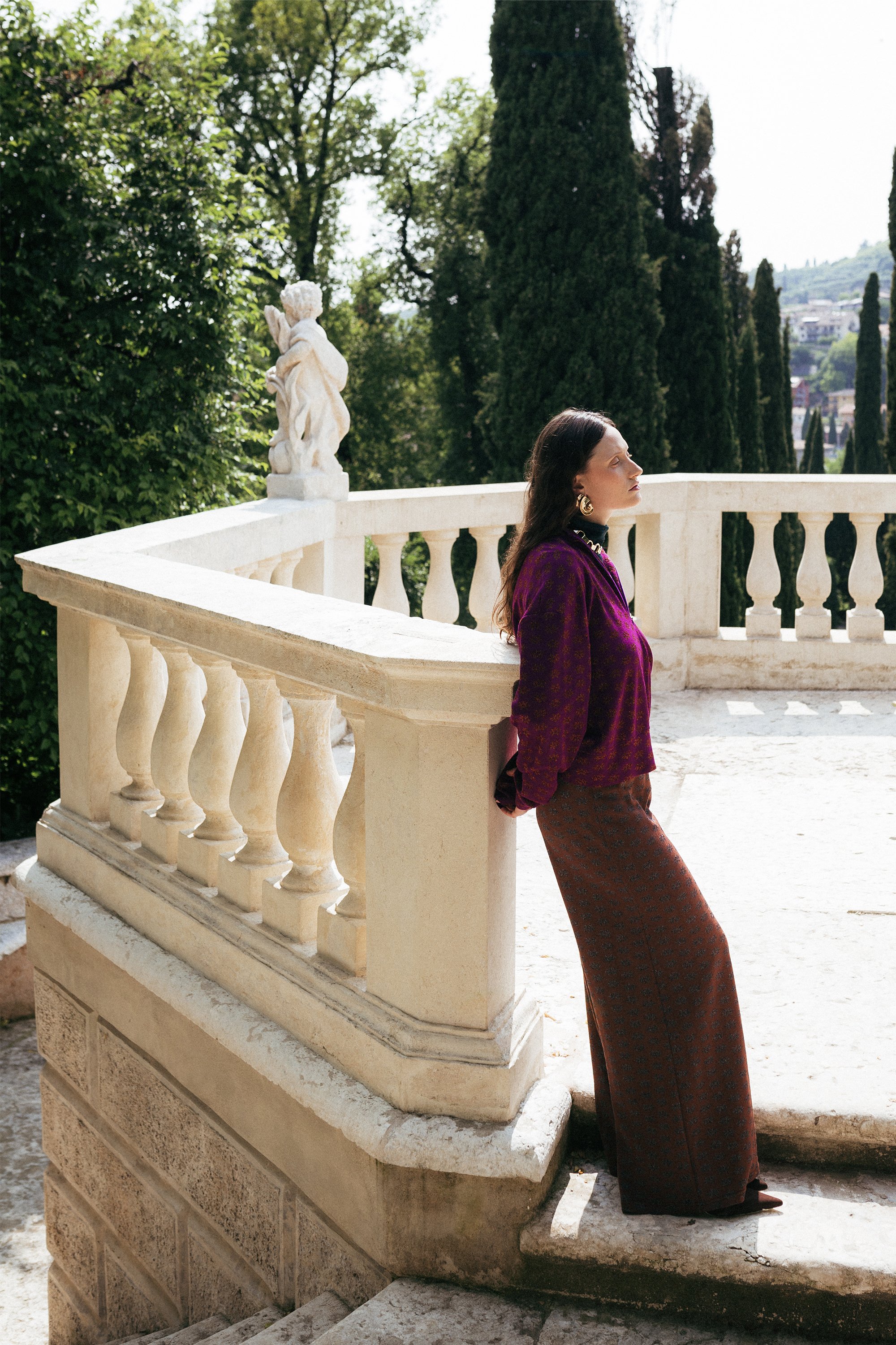 Panta palazzo ampio con elastico in vita e gamba svasata.