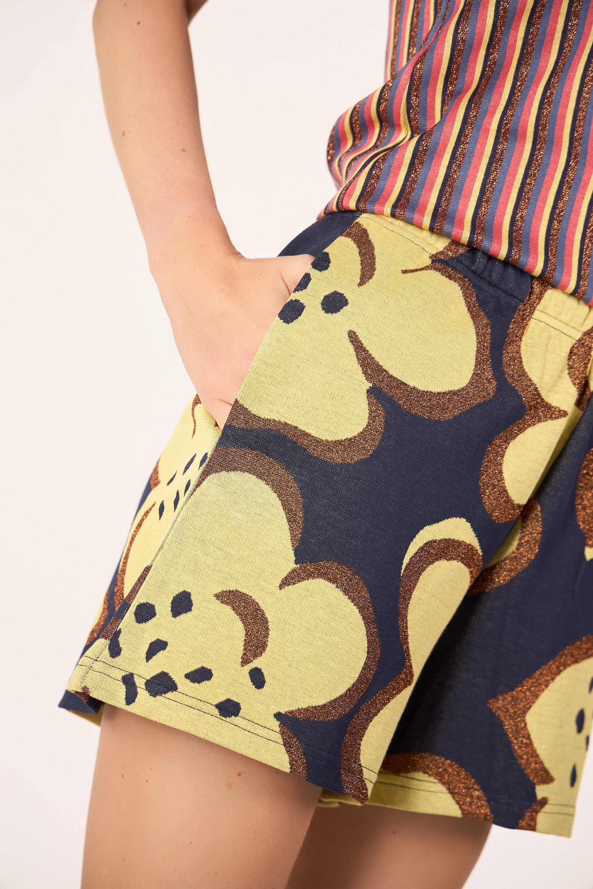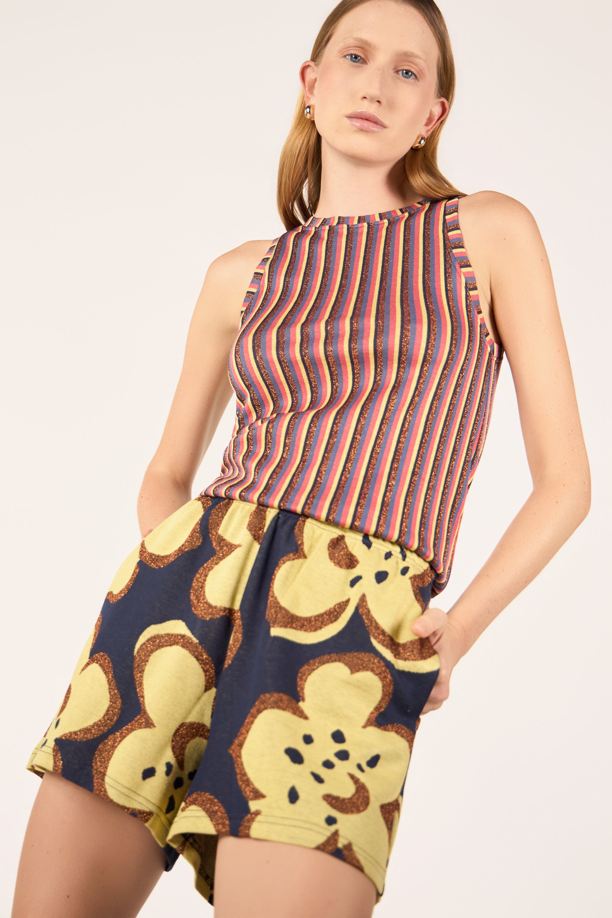 Short con vita media elasticizzata. Tasche laterali.