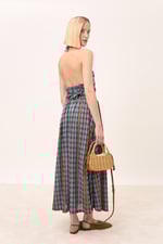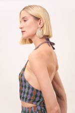 Top corto con chiusura sul collo. Elastico sulla schiena arricciato.