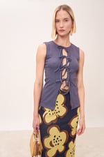 Top con laccetti smanicato.